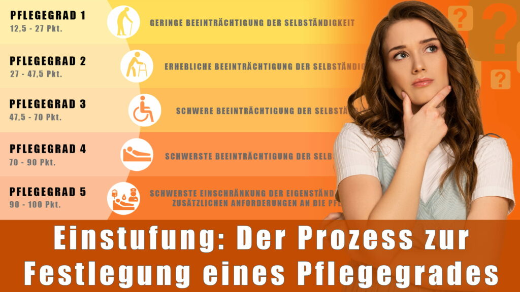 Die Einstufung erfolgt anhand einer Gesamtpunktzahl, die im Rahmen der Begutachtung ermittelt wird. Je höher die erreichte Punktzahl, desto höher fällt der Pflegegrad aus: